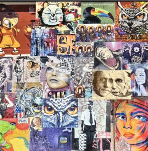 Collage de mes photos street art sur MDF 80/80 inséré dans caisse américaine (photo à venir)