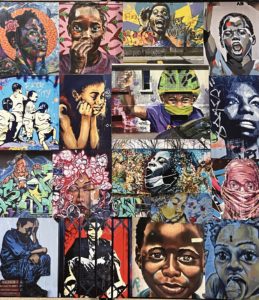 Collage de mes photos street art sur MDF 80/80 inséré dans caisse américaine (photo à venir)